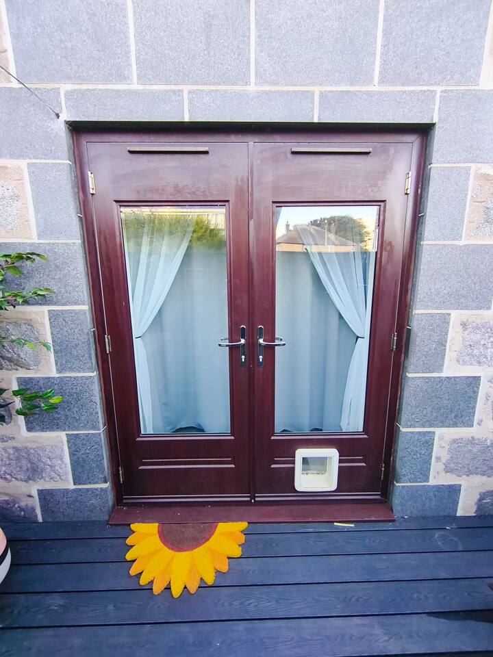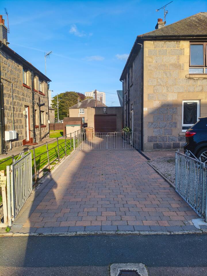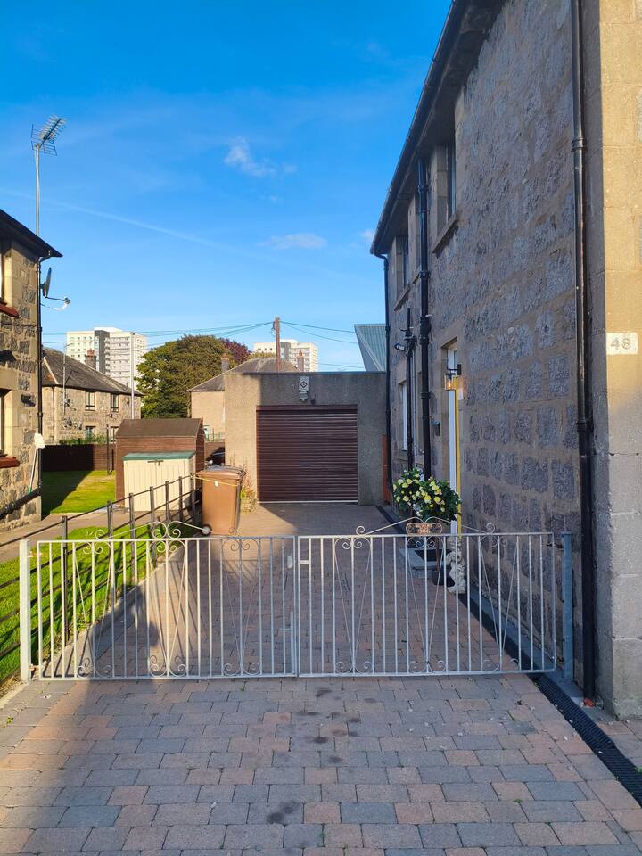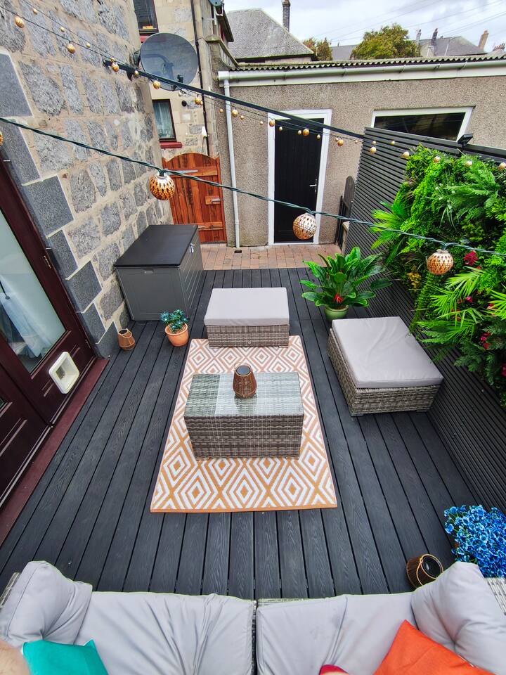 New to market, stylish 2-bed apartment on Aberdeen's edge - Perfect for city and shire adventures. Just 10 min by frequent buses (stop 2 min away) to the centre, and a 10 min stroll to the beach and nature reserve. Enjoy nearby parks, walking trails and the medieval streets of Old Aberdeen. Features a private gated drive for 3 cars, granite chips front garden and direct front door access. Relax in the modern, fenced, back garden. With deck,seating, table and ambient lighting for cosy evenings.