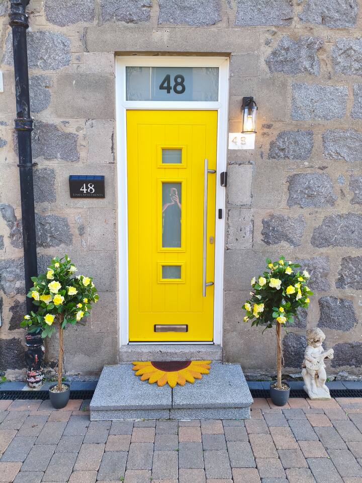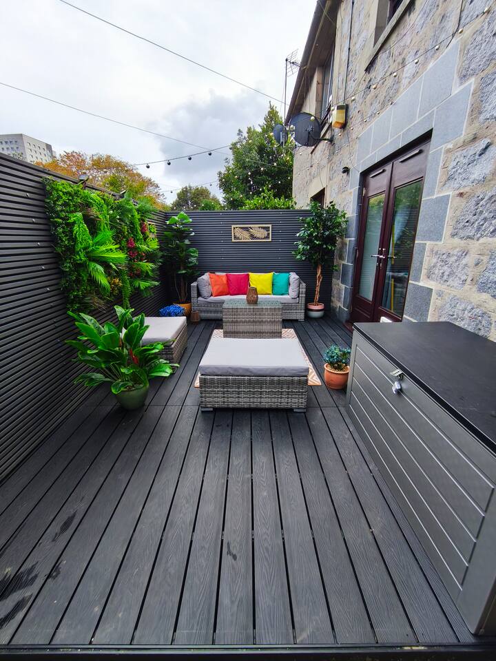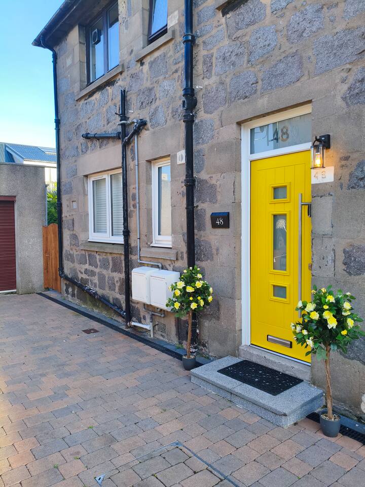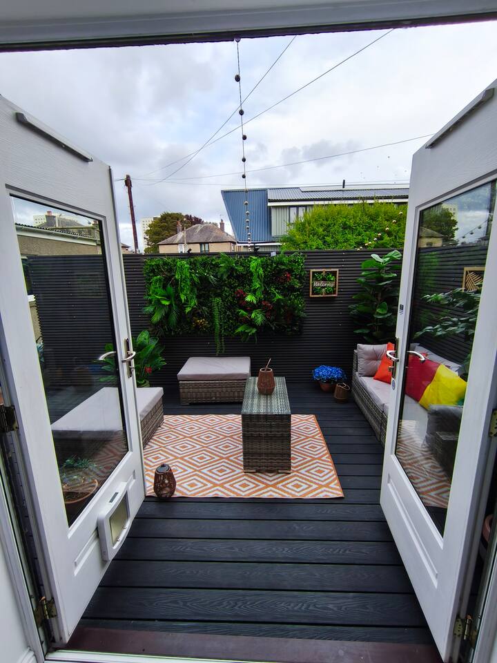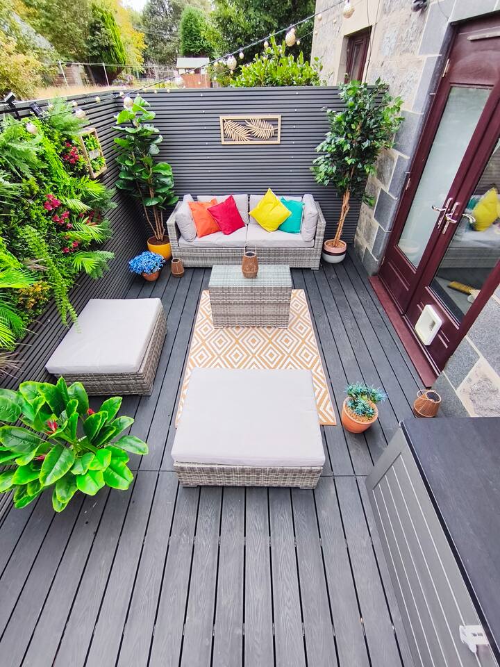 New to market, stylish 2-bed apartment on Aberdeen's edge - Perfect for city and shire adventures. Just 10 min by frequent buses (stop 2 min away) to the centre, and a 10 min stroll to the beach and nature reserve. Enjoy nearby parks, walking trails and the medieval streets of Old Aberdeen. Features a private gated drive for 3 cars, granite chips front garden and direct front door access. Relax in the modern, fenced, back garden. With deck,seating, table and ambient lighting for cosy evenings.
